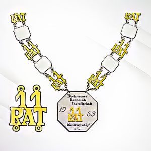 Prinzenketten / Ordensketten liefert das Versandhaus Neumeyer-Abzeichen zum günstigen Preis. Elferrats- und Präsidentenketten -Schmuckketten, Neutrale Orden, Sonderanfertigungen. Massive, extra starke Metallronden in hochwertiger Schmuckqualität. Wir fertigen auf Wunsch auch Faschingsfiguren in 3D. Alle Ketten für die Karnevalsorden sind auch in echt Silber lieferbar. Preise auf Anfrage.