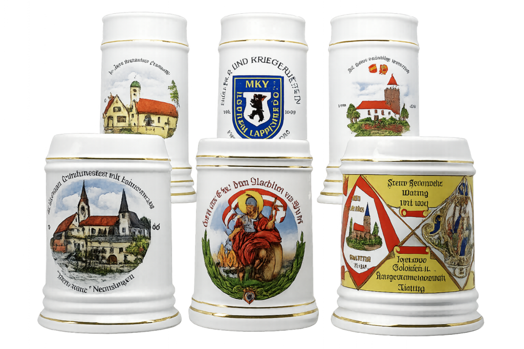 Bei Neumeyer Abzeichen erhalten Sie individuell gestaltete Krüge in zahlreichen Ausführungen und Größen. Ob für ein Vereinsfest, ein Jubiläum, als Souvenir oder als einzigartiges Fotogeschenk – bei uns können Sie Ihre Krüge ganz nach Ihren Wünschen personalisieren.